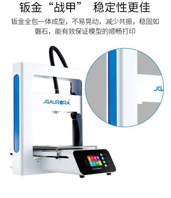 3D打印機是一種新興制造工具,而工具本身的根本要求是能經(jīng)受長期使用、能保證穩(wěn)定的產(chǎn)出質(zhì)量。在市場上桌面級3D打印機不停控制成本時,極光爾沃仍然堅持質(zhì)量第一的標(biāo)準(zhǔn),機身采用了一體鈑金制造,9kg的全重是品質(zhì)的直觀表現(xiàn)。潔白機身與品牌藍調(diào)點綴,造就大氣的高雅外觀。多功能觸控系統(tǒng)操作便捷。干練的造型體現(xiàn)出極簡的科技最終追求。專業(yè)化的工業(yè)外觀設(shè)計,傳遞出有情感,有品味,科技向上的品牌態(tài)度。