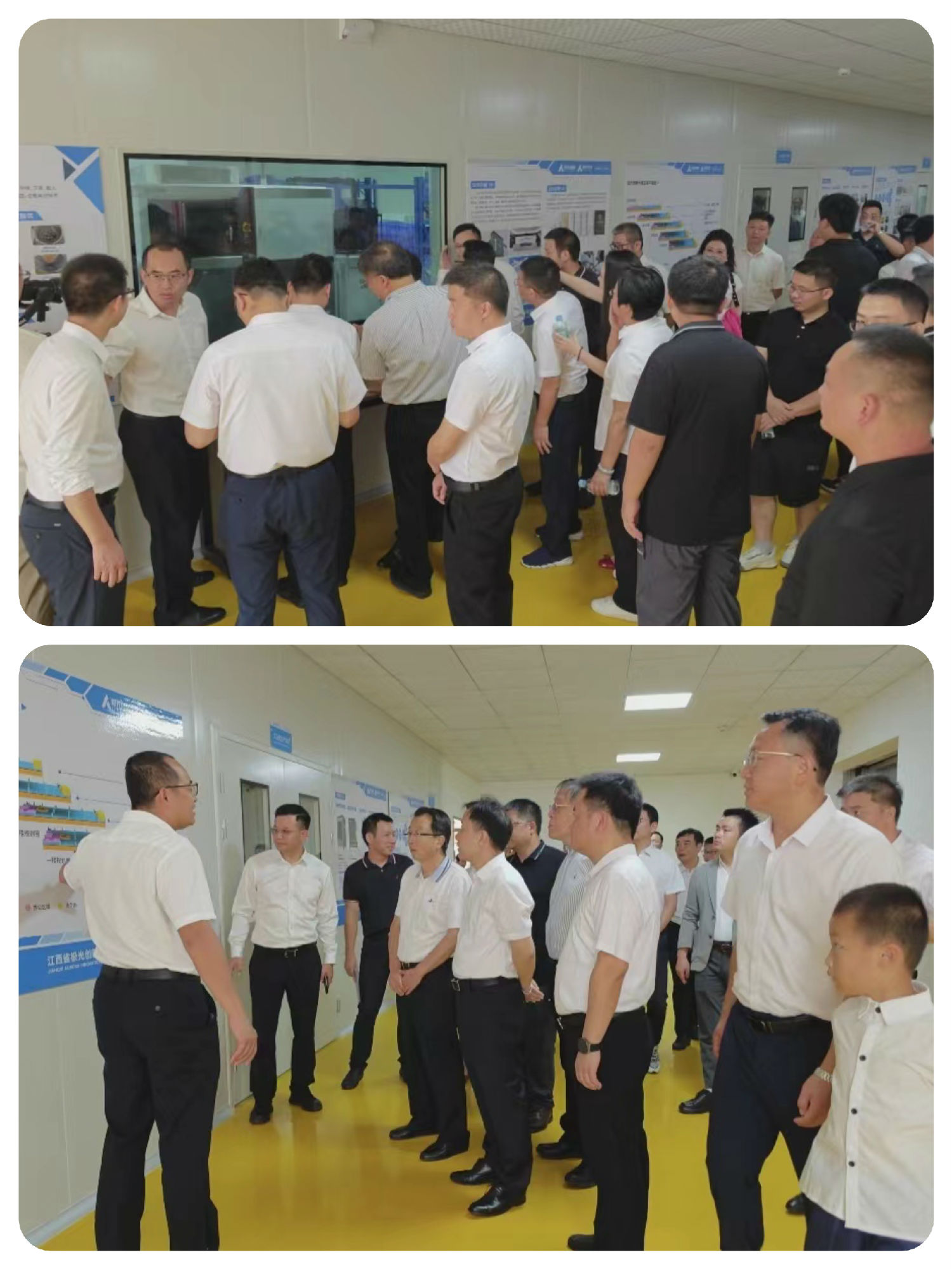 投產(chǎn)揭牌儀式后,與會人員還來到了江西省極光創(chuàng)新有限公司生產(chǎn)基地參觀了極光創(chuàng)新全新升級千級無塵車間和智能生產(chǎn)線,深入了解了生產(chǎn)線的先進設(shè)備、智能操作和創(chuàng)新技術(shù),近距離體驗到了高效、智能的產(chǎn)品理念和科技創(chuàng)造的魅力。