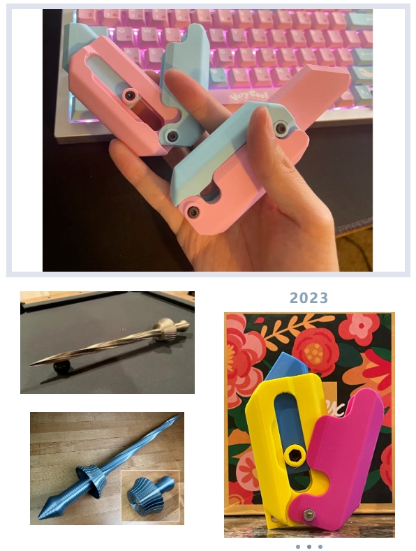 近期我們也對(duì)2023年最受歡迎的3D打印模型做了匯總,不出意外,碧云龍、蘿卜刀、蝴蝶刀、伸縮劍等,都在其列。