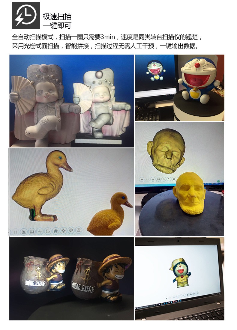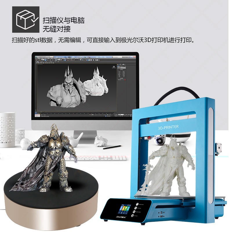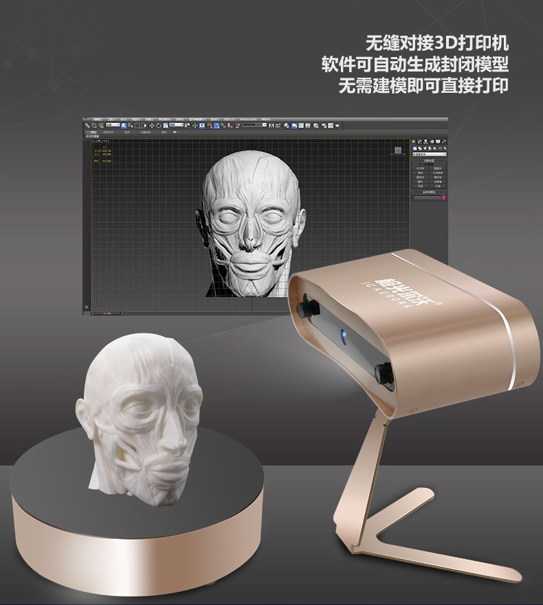 無需建模,輕松掃一掃便可自動(dòng)拼接,無縫對(duì)接3D打印機(jī)軟件可自動(dòng)生成封閉模型直接打印。