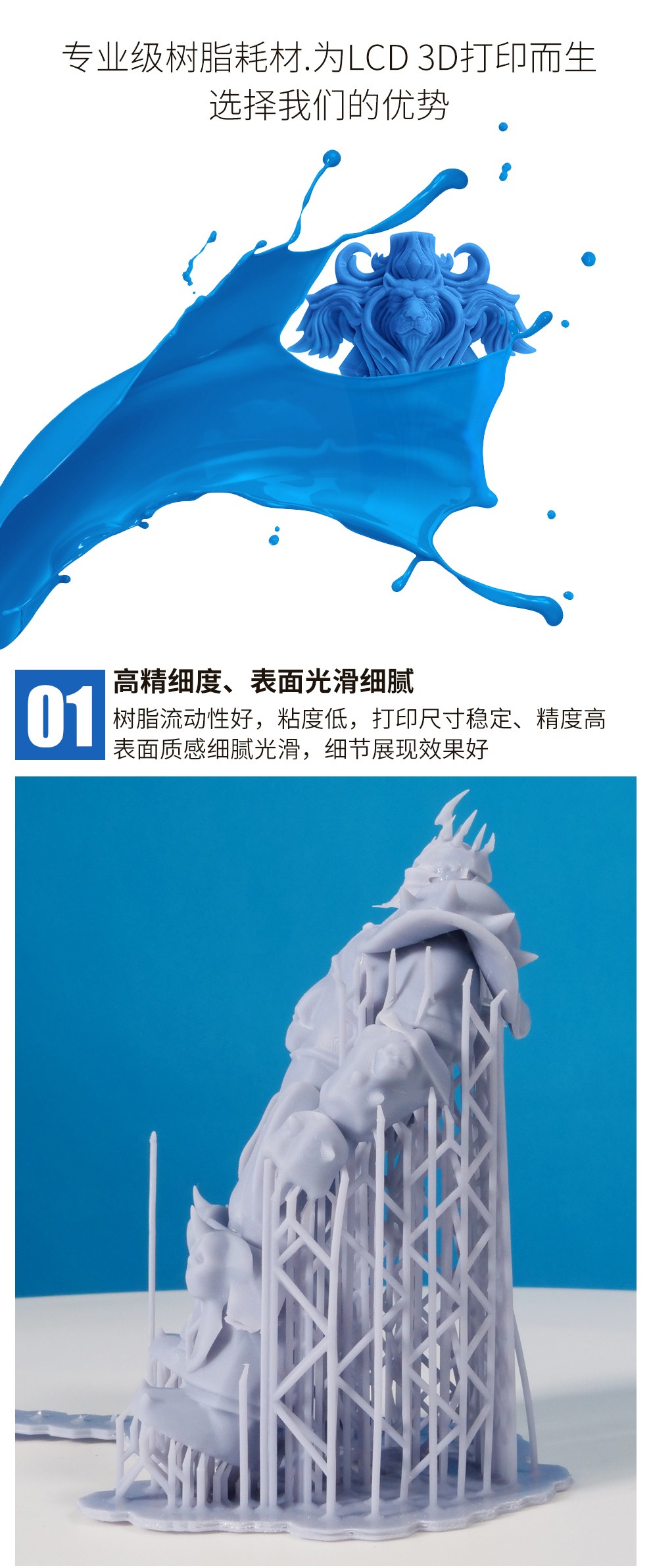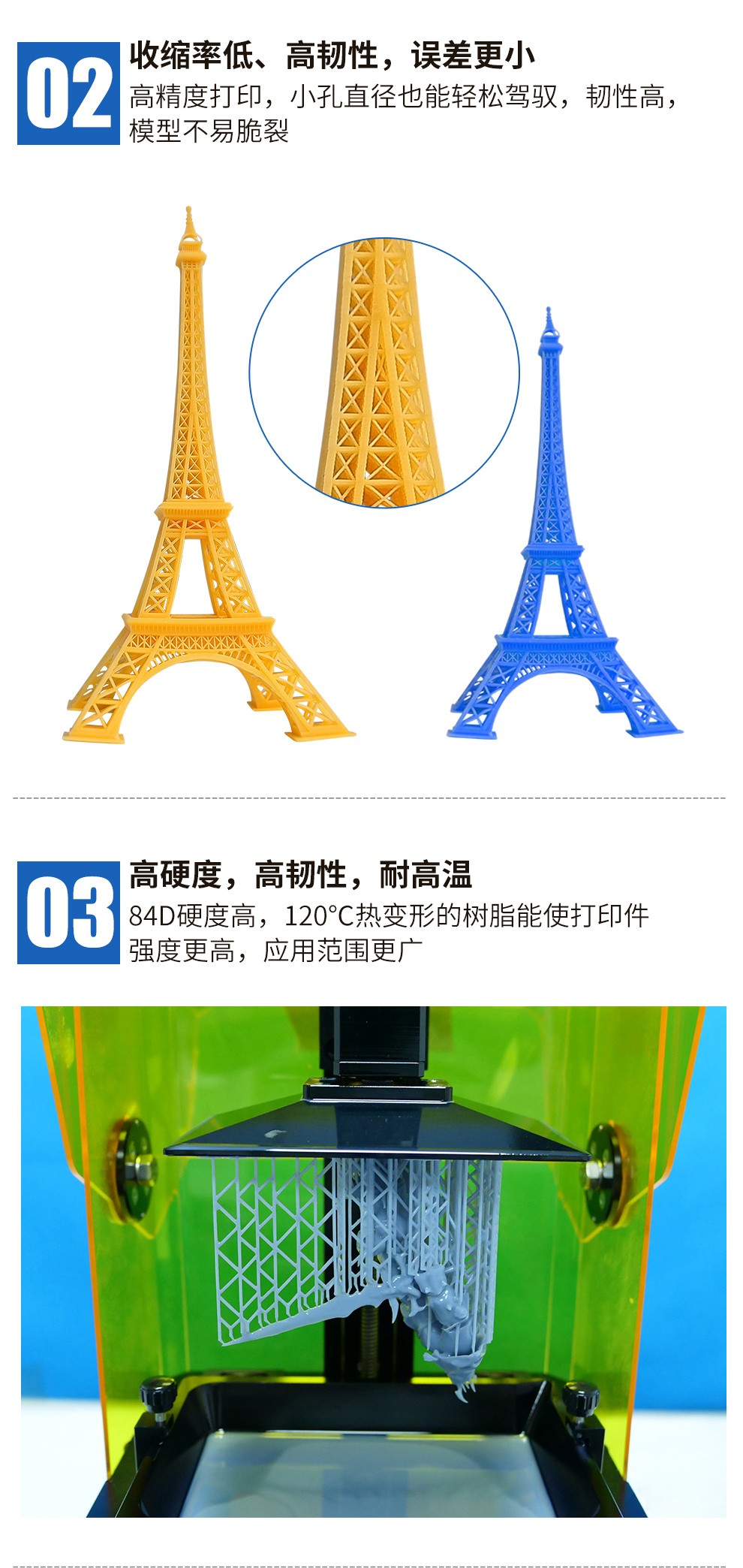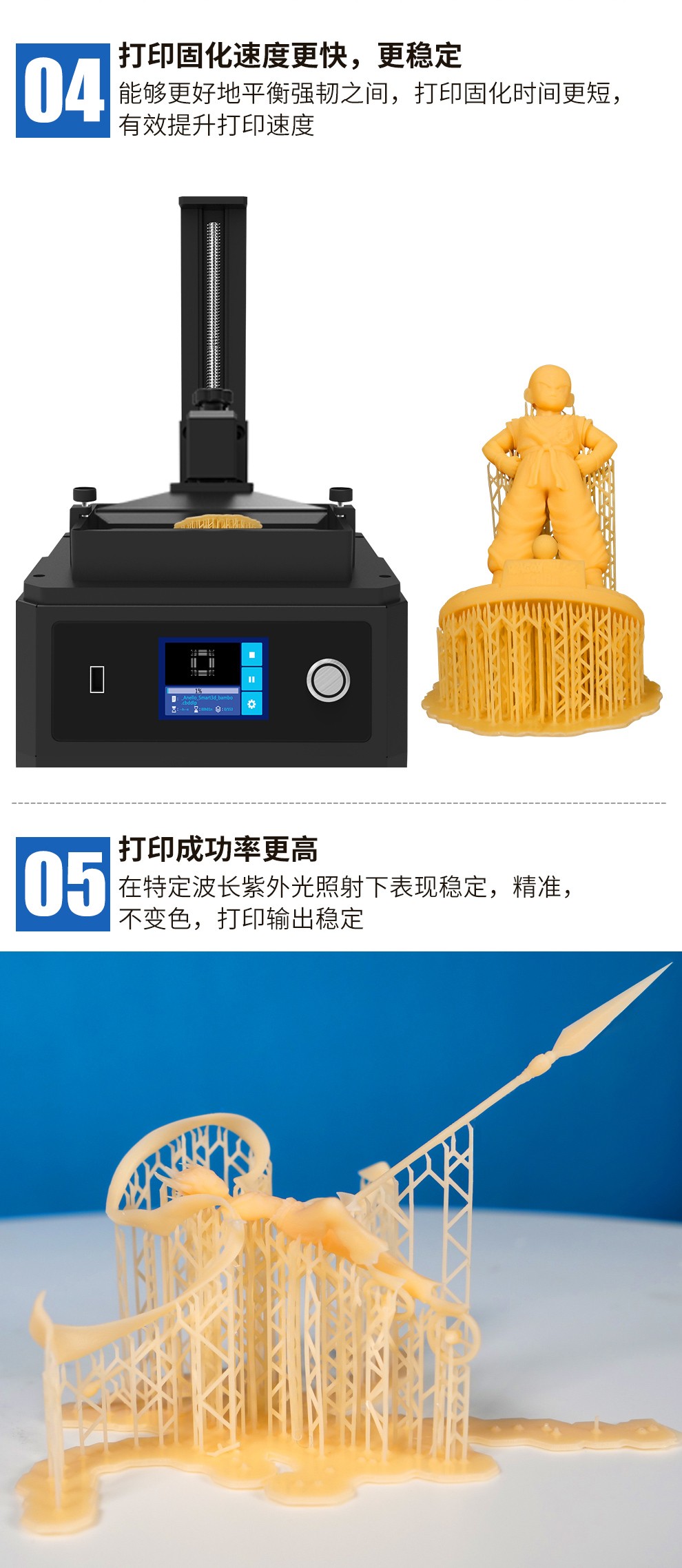 通用剛性樹脂耗材,高精細(xì)度表面光滑細(xì)膩,收縮率低、高韌性,誤差更小,高硬度、耐高溫,固化速度更快更穩(wěn)定,兼容市面上的LCD 3D打印機(jī)